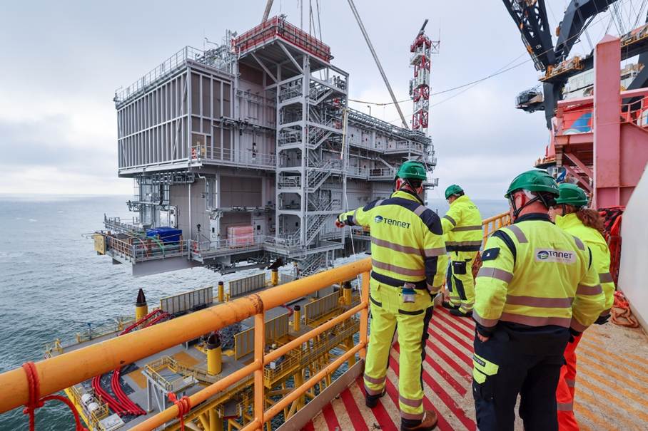 Persbericht Topside ‘west Beta’ voor stopcontact TenneT succesvol op jacket geplaatst